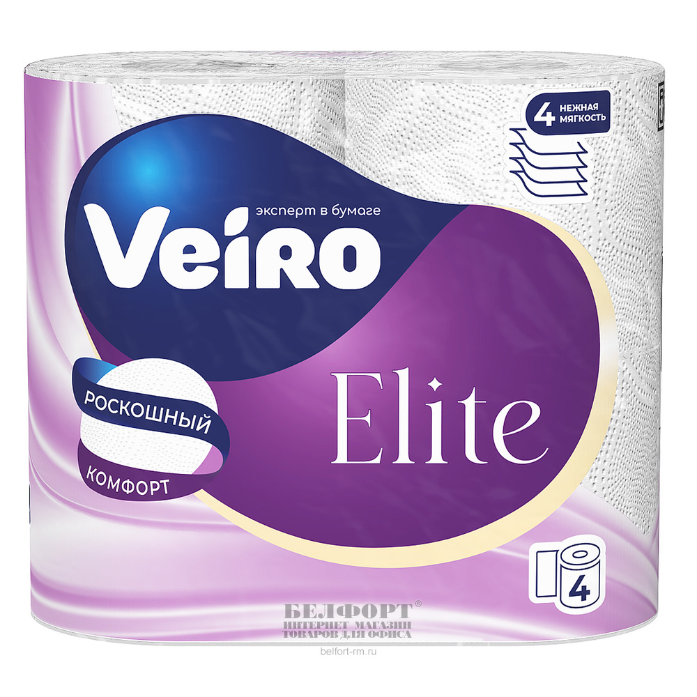 Бумага туалетная 4-слойн., Veiro, "Elite", белая, 15м, 4шт, с втулкой, с тиснением, перфорация есть