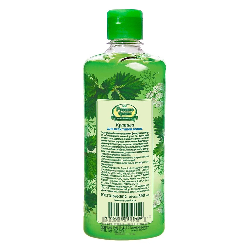 Шампунь Русские травы, "Для всех типов волос", "Крапива", 350мл