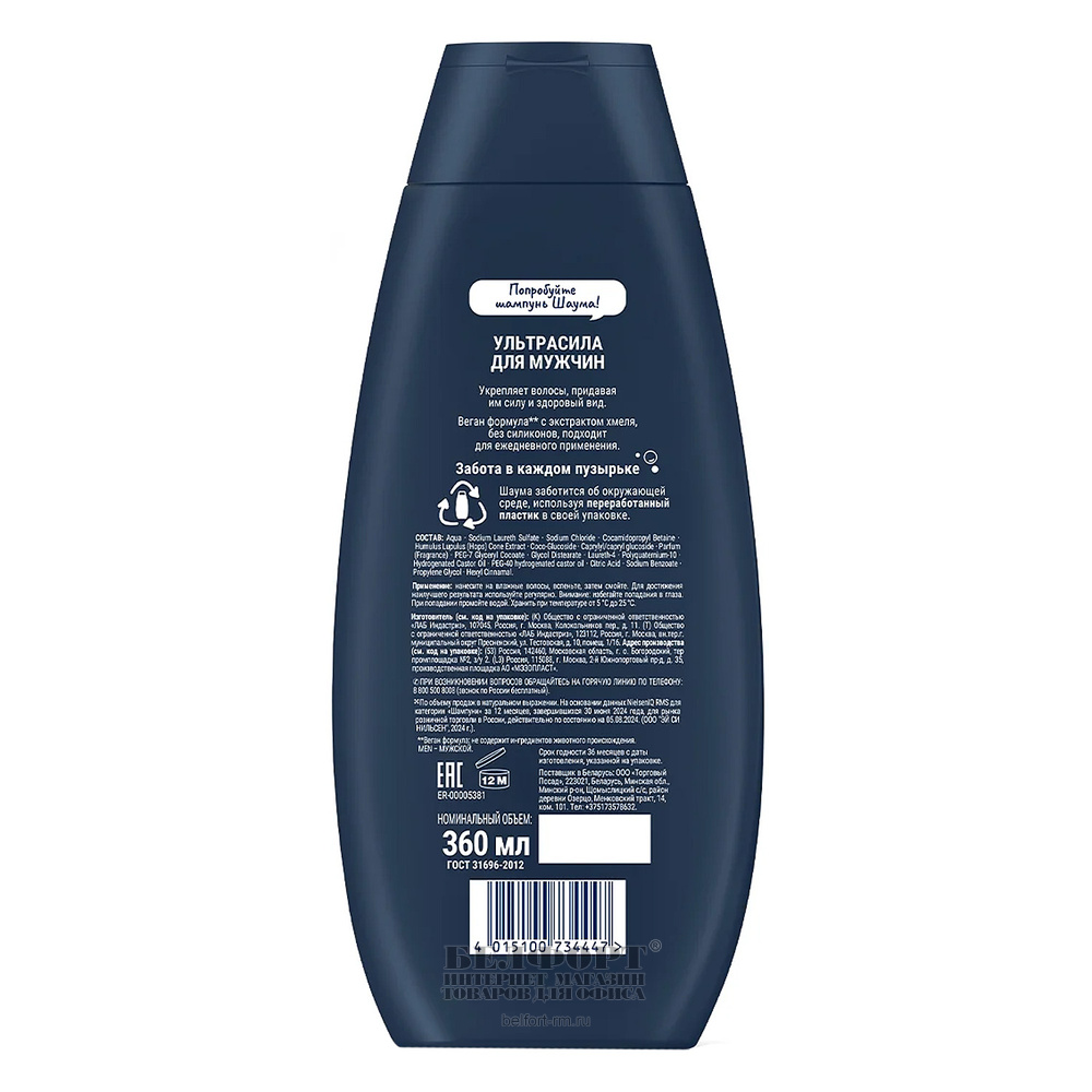 Шампунь Шаума, "Men Ultra Сила для ежедневного применения", 360мл, мужской