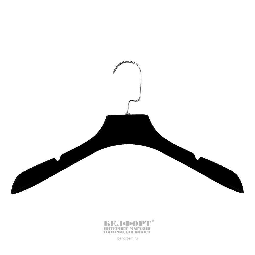 Вешалка (плечики) для верхней одежды, размер 40-42, ширина 38,5см, пластик, черная, анатомическая, покрытие Soft touch, Доляна