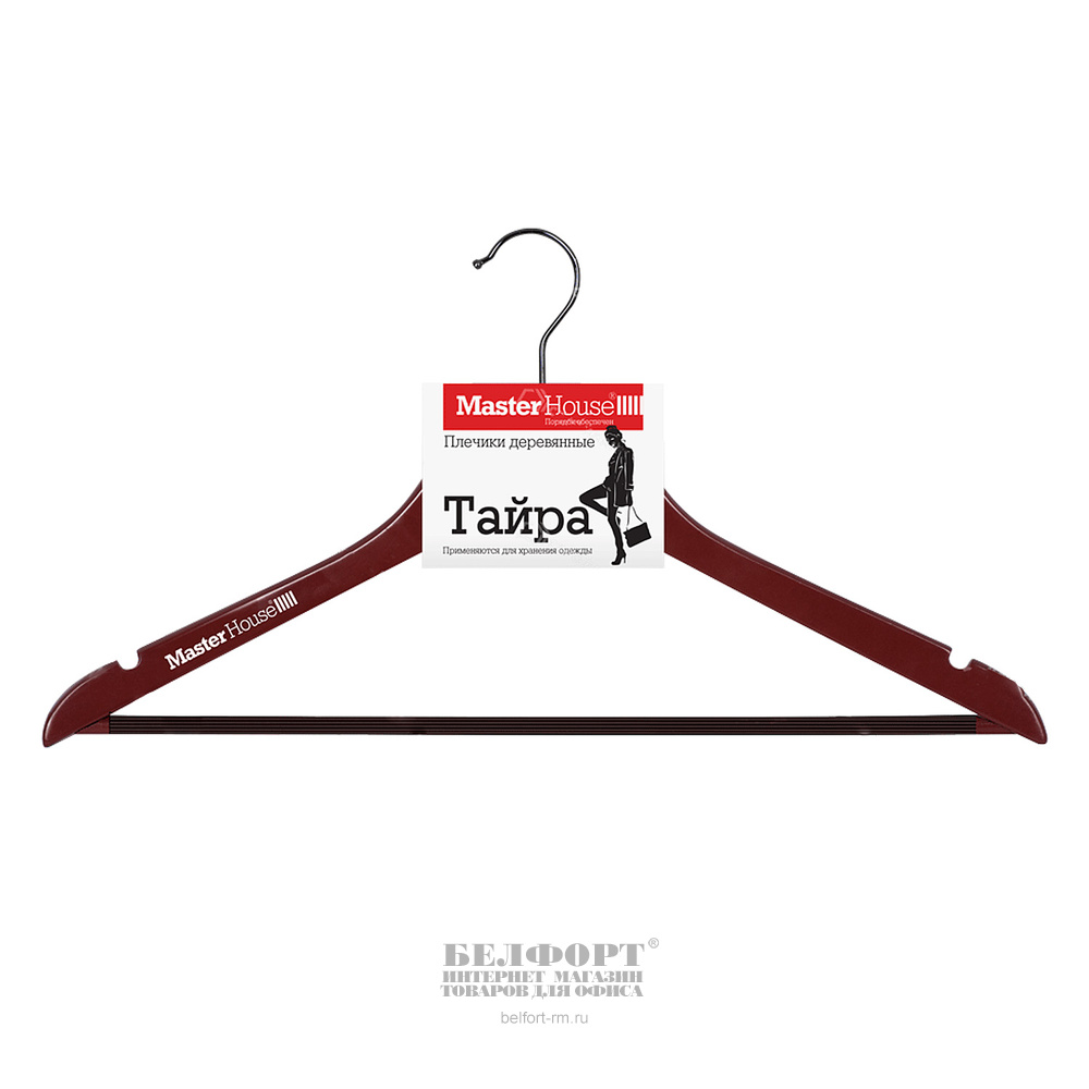 Вешалка (плечики) для верхней одежды, ширина 44см, дерево, вишня, с перекладиной, с антискользящим резиновым покрытием, Master House, "Тайра"