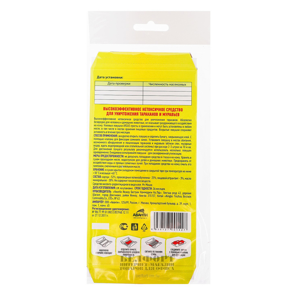 Приманки Argus просты в применении и могут быть установлены где угодно, в том числе в местах хранения пищевых продуктов.