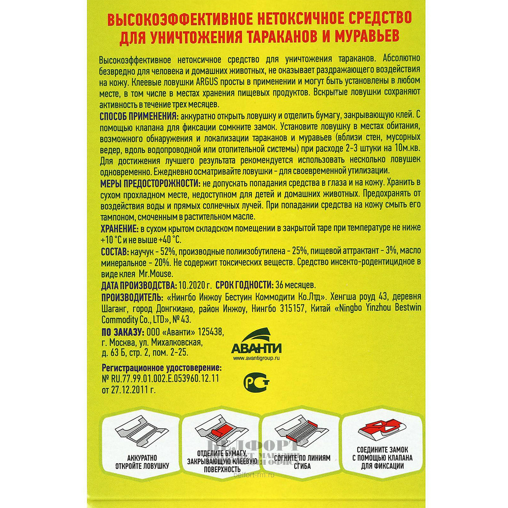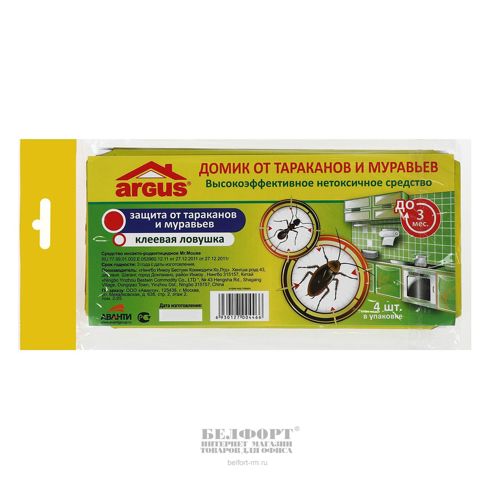 Ловушка клеевая, от тараканов и муравьев, 4шт, Argus, домик