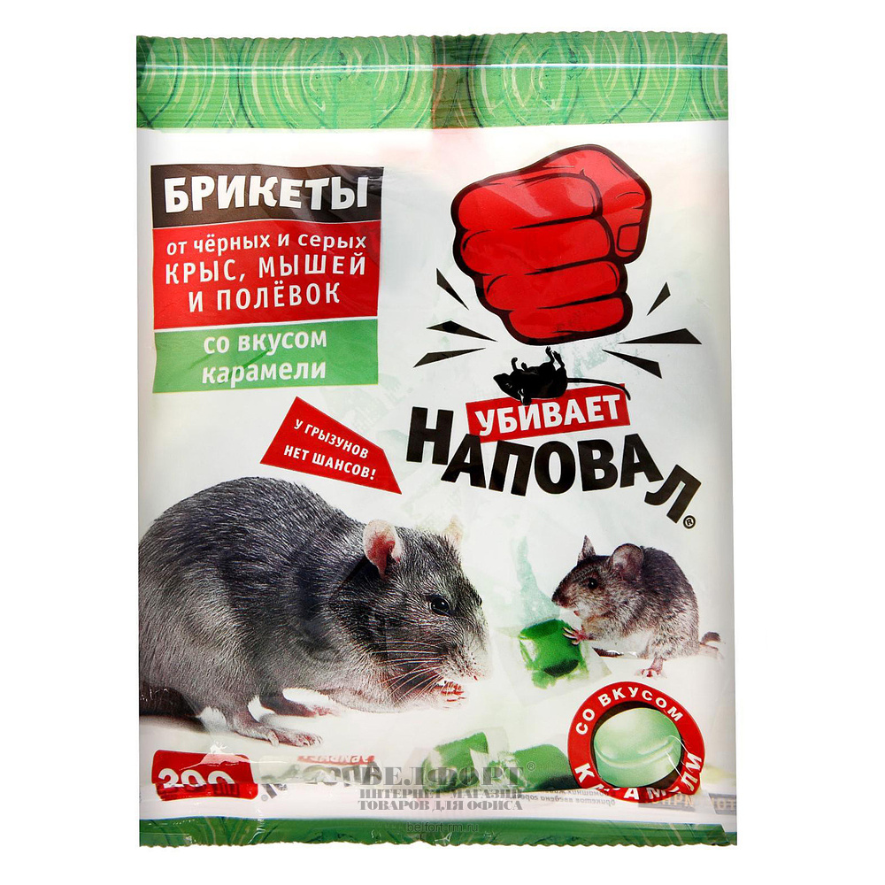 Приманка тесто-брикеты, от мышей и крыс, Наповал, "Аромат карамели", 200г