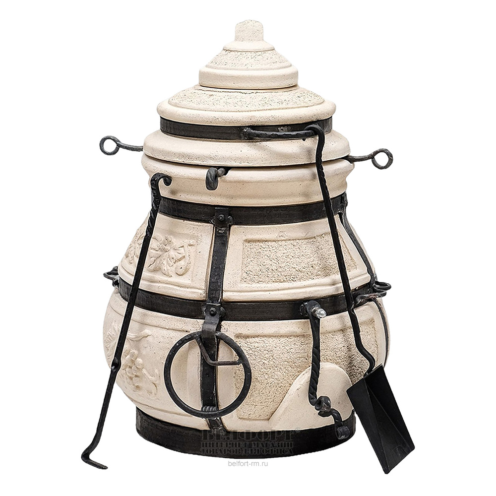 Тандыр Амфора, "Кочевник", высота 63см, диаметр 45 см, 52,5кг, 8 шампуров, кочерга, совок, с откидной крышкой