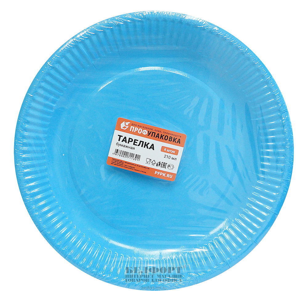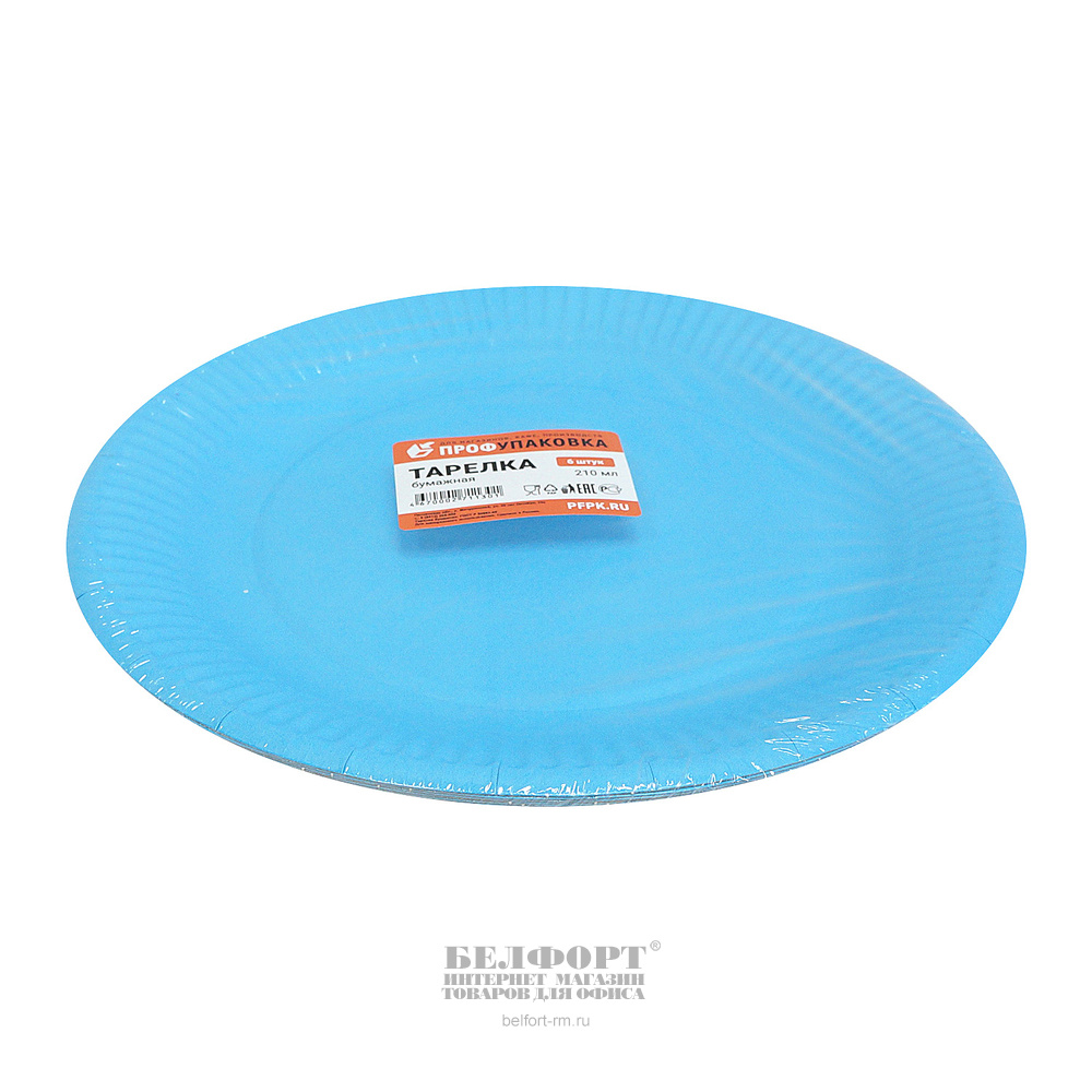 Тарелка столовая картон, синяя, 21 см, 6шт