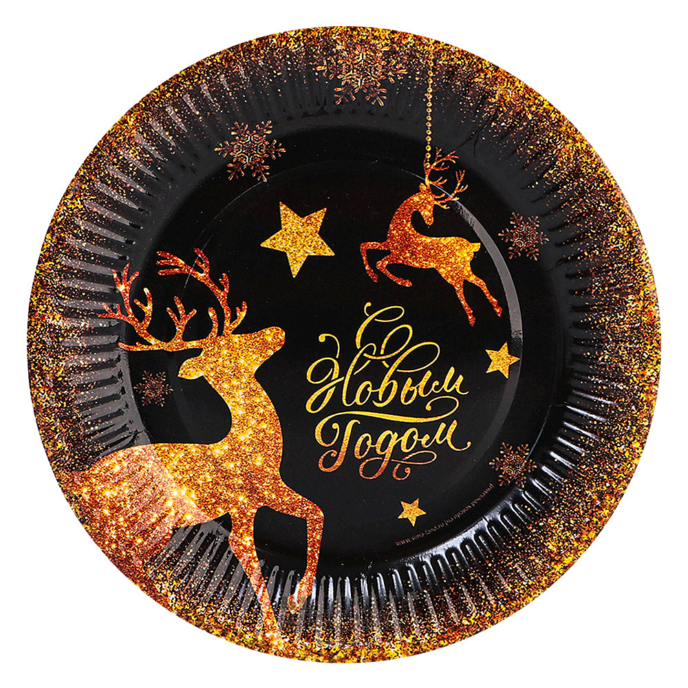 Тарелка десертная картон, Страна Карнавалия, "С Новым годом "Золотые новогодние олени", цветная, 18 см, 10шт