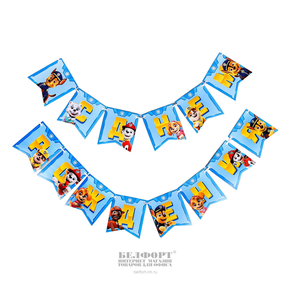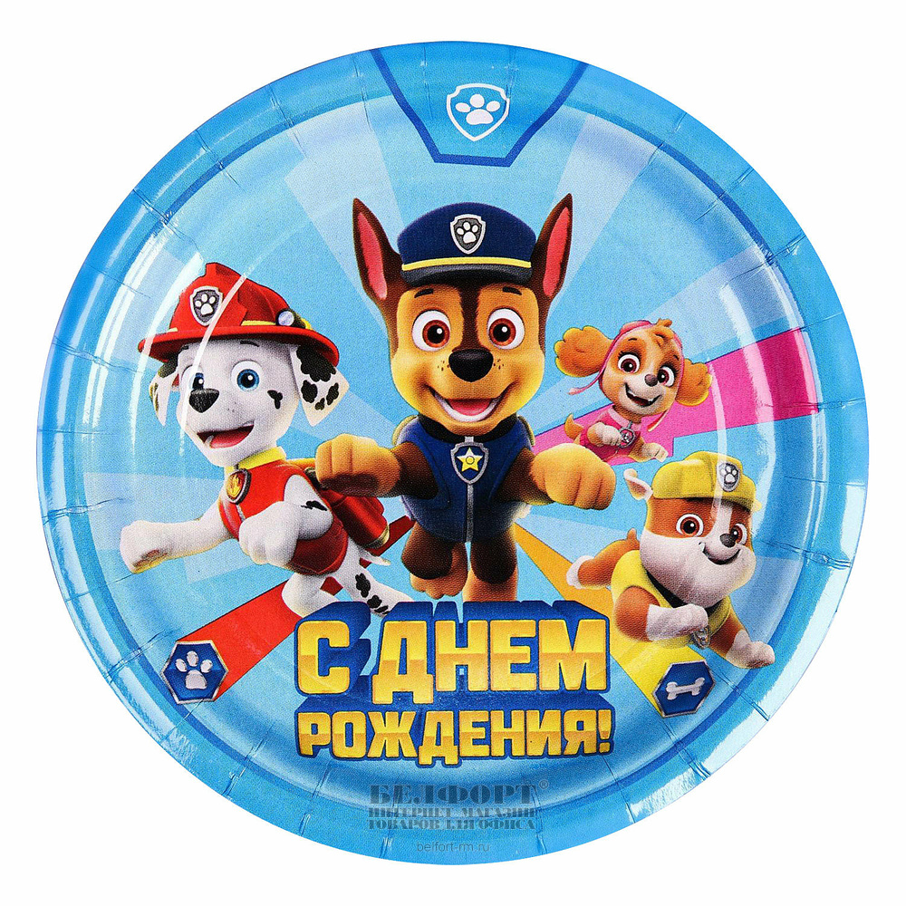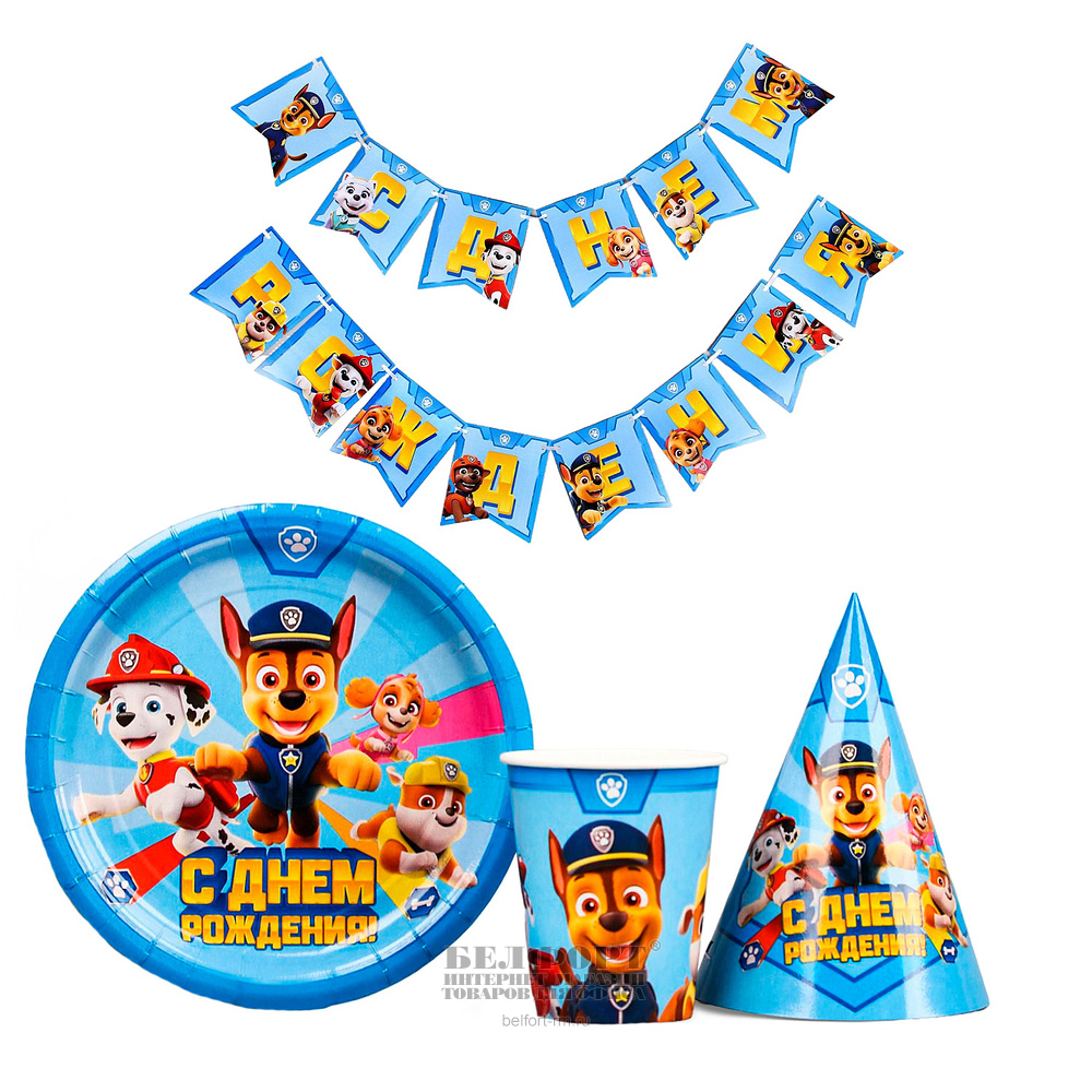 Набор посуды картон, Paw Patrol, "С днем рождения! Щенячий патруль", голубой, 18 см, 19шт, 6 тарелок, 6 стаканов, 6 колпаков, 1 гирлянда