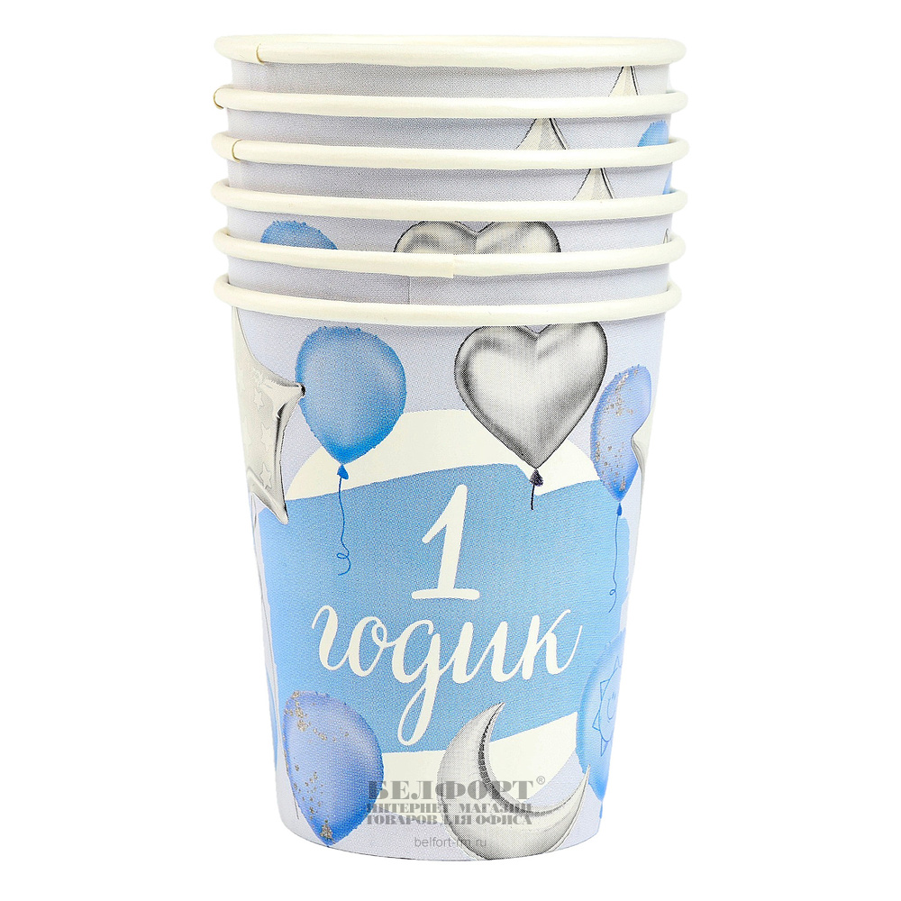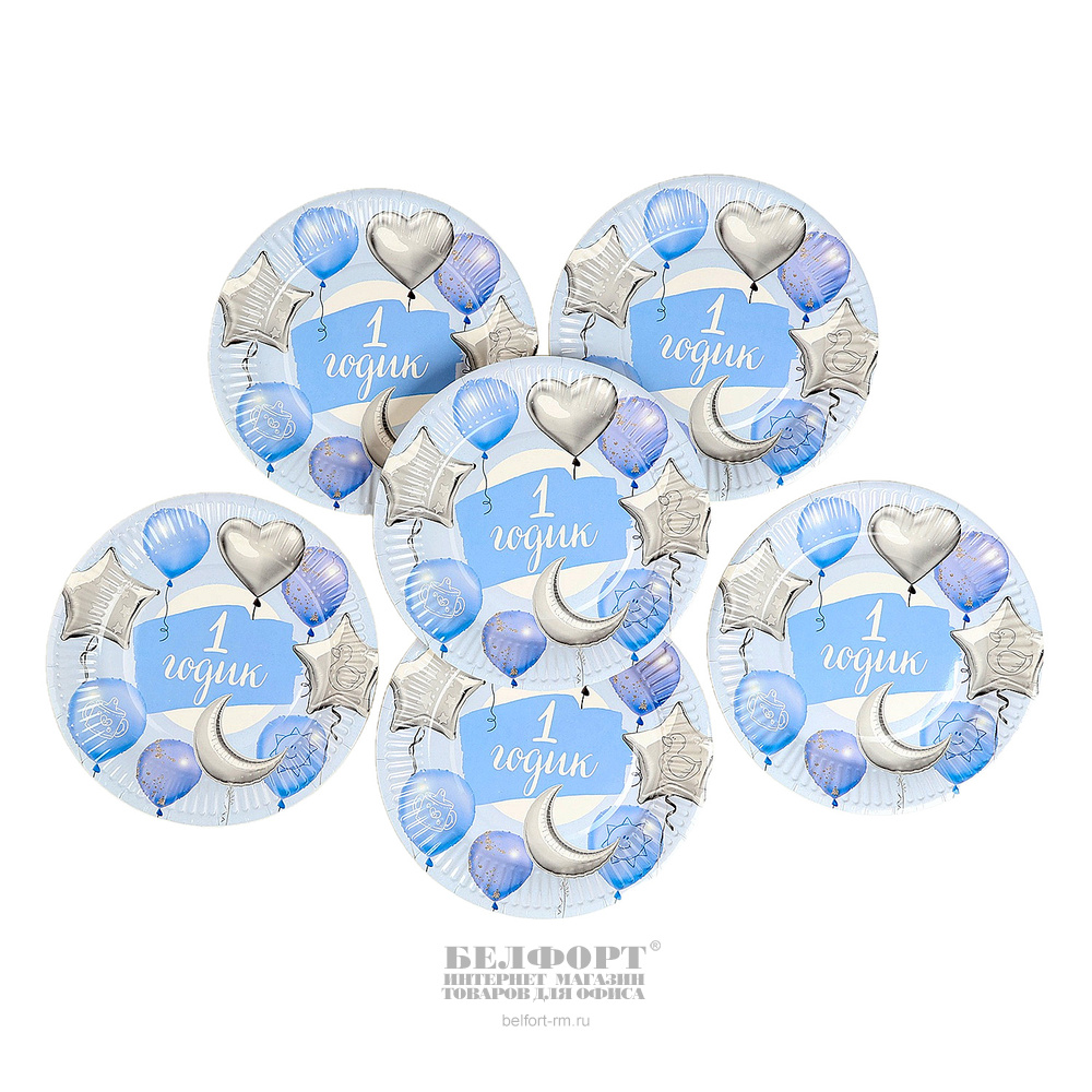 Набор посуды картон, Страна Карнавалия, "С днем рождения. 1 годик", голубой, 18 см, 12шт, 6 тарелок, 6 стаканов