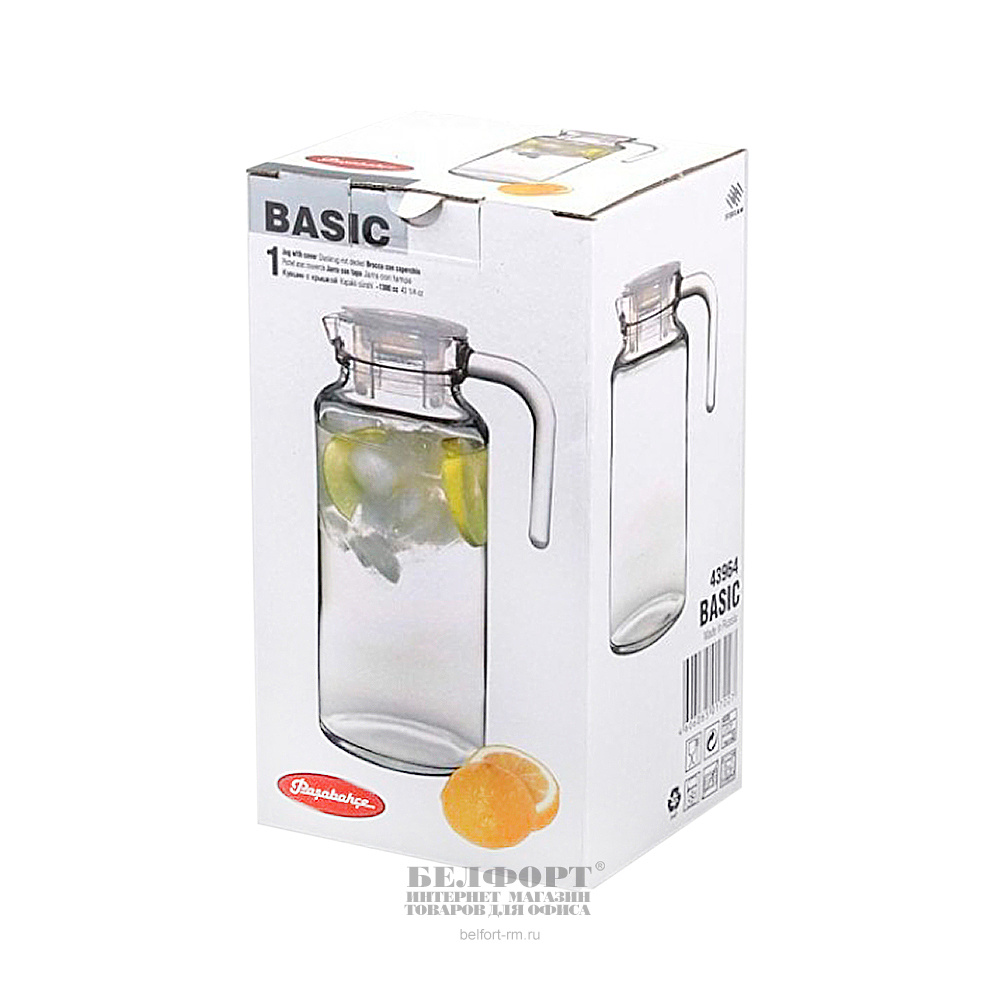 Кувшин 1,3л, стекло, с крышкой, Pasabahce, "Бейсик", прозрачный, картон. уп.