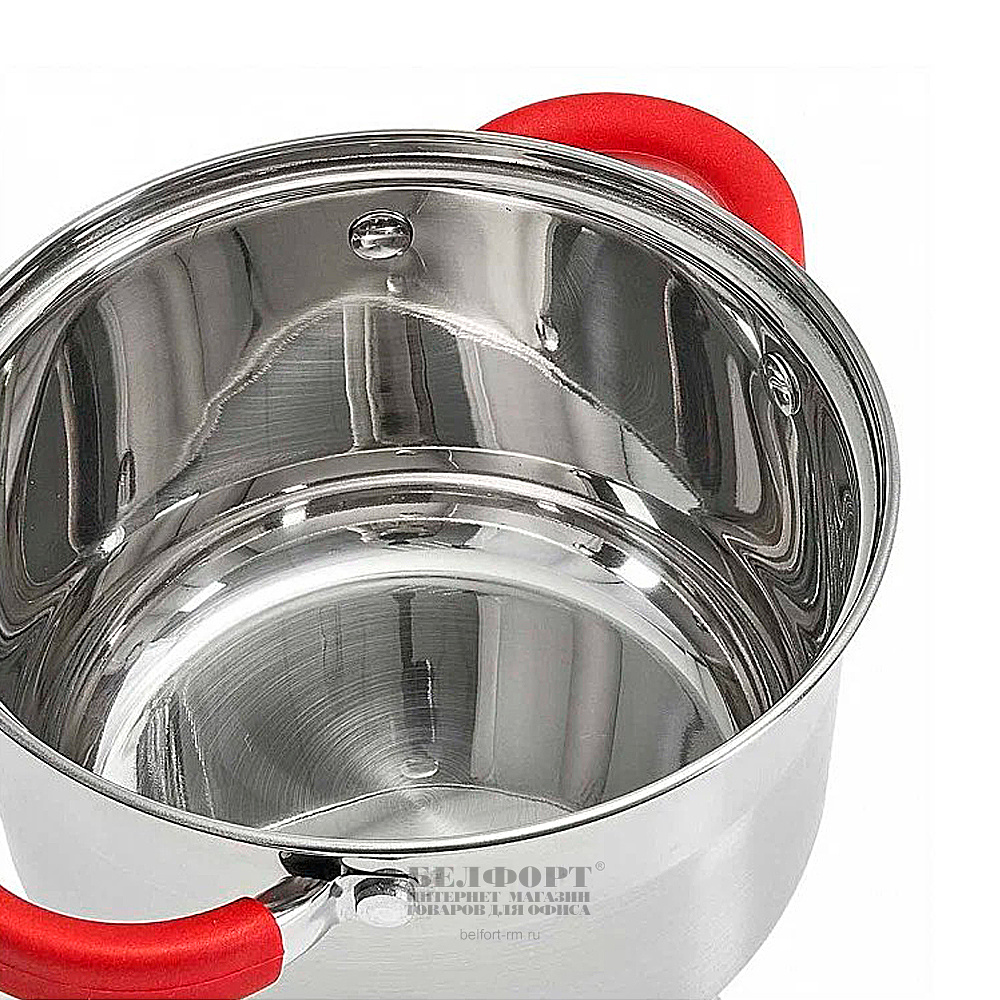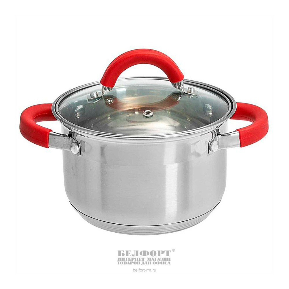 Кастрюля 3л, нержавеющая сталь, без покрытия, Webber, "Profi" со стеклянной крышкой, с силиконовыми ручками, для всех типов плит, индукционное дно