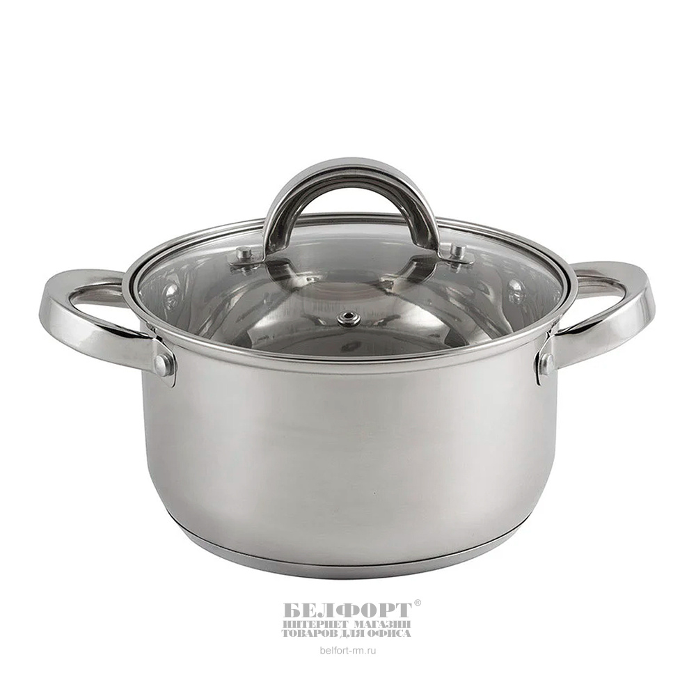 Кастрюля 2,6л, нержавеющая сталь, MEDIANO, 18 см со стеклянной крышкой, капсульное дно, для всех типов плит, индукционное дно