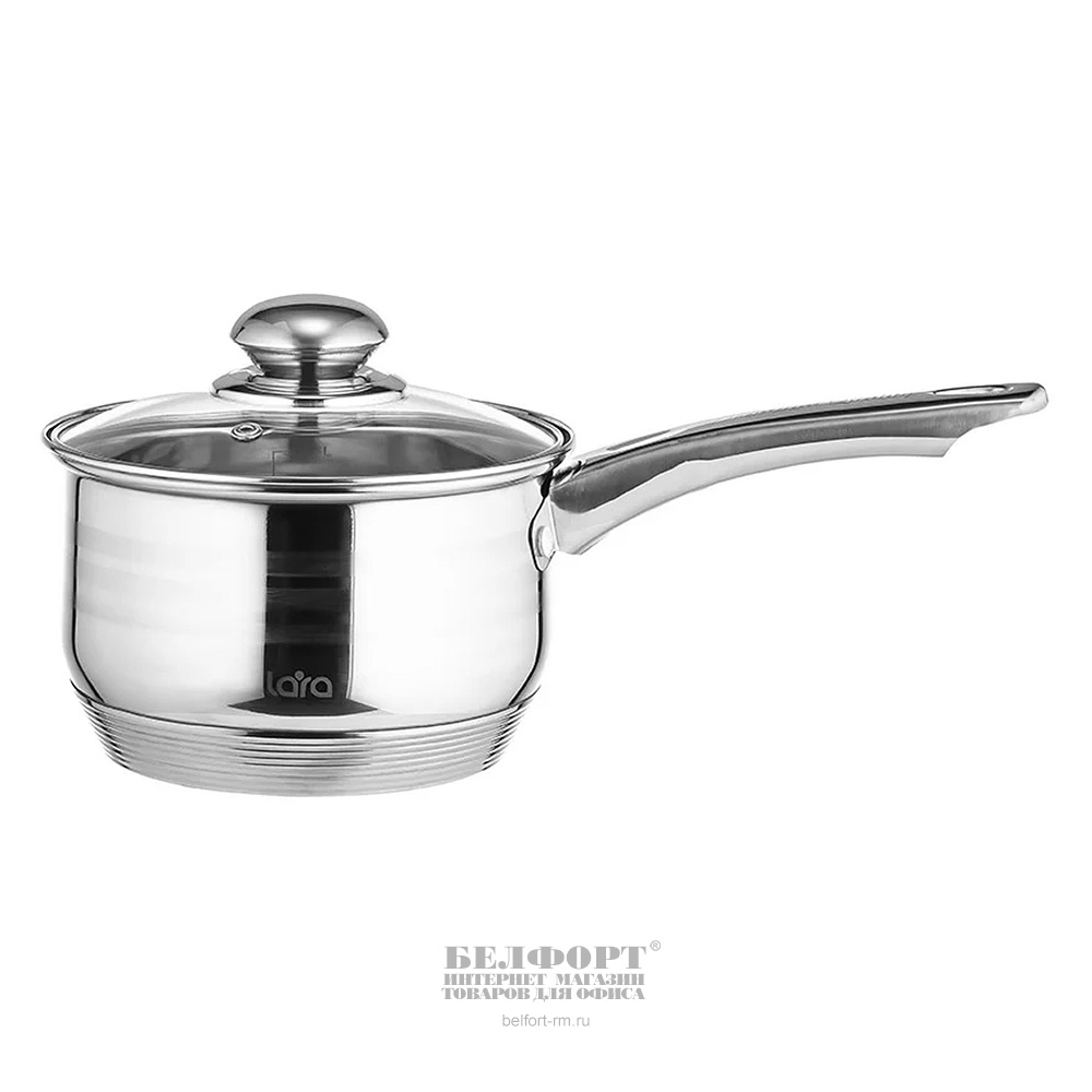 Добавить к сравнению258481Есть в наличии 1 шт.Ковш 2,1л, нержавеющая сталь, Lara, "Веста", d 16 см, h 10см, со стеклянной крышкой, для всех типов плит, индукционное дно