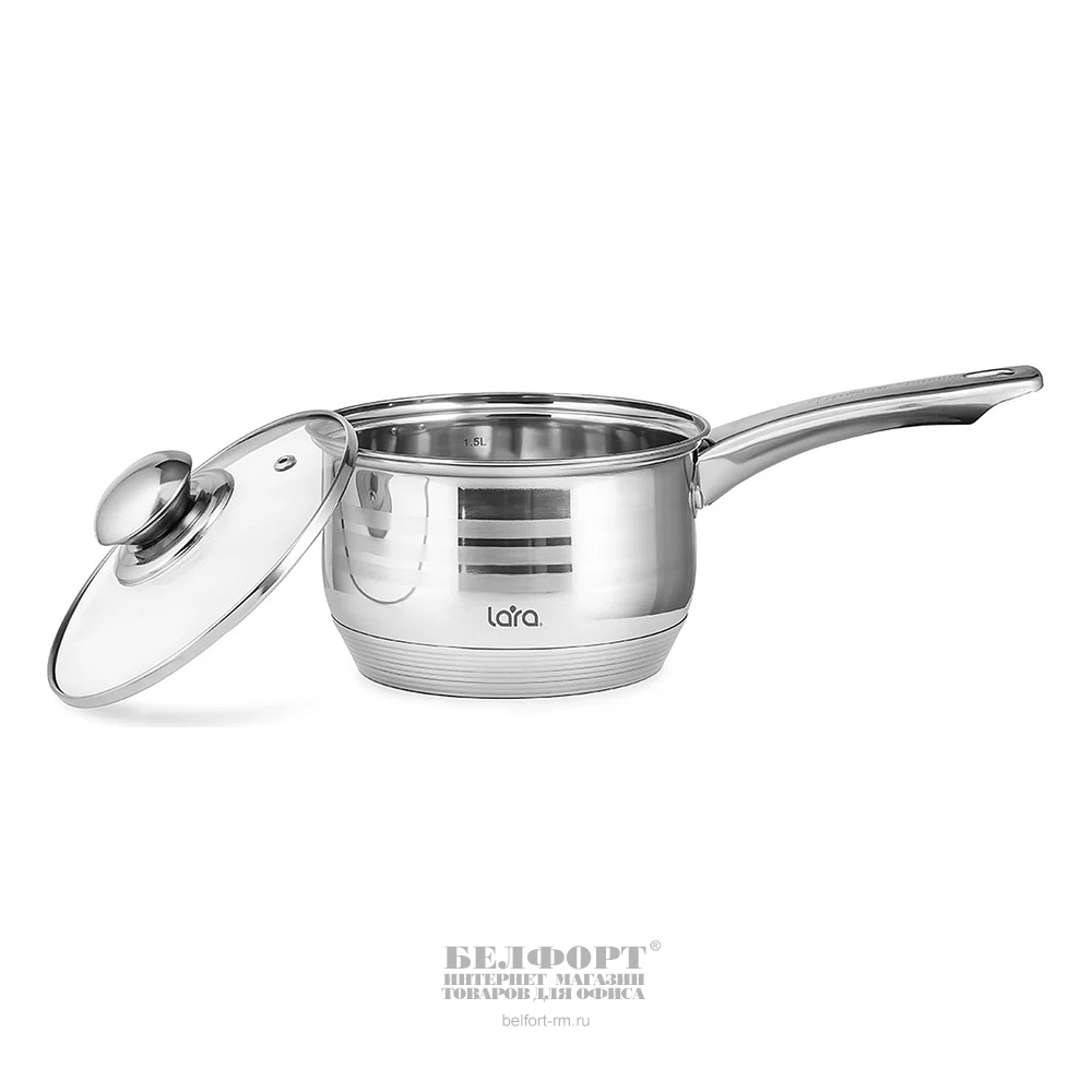 Ковш 2,1л, нержавеющая сталь, Lara, d 16 см, h 10,5см со стеклянной крышкой, 7-cтупенчатое дно, для всех типов плит, индукционное дно