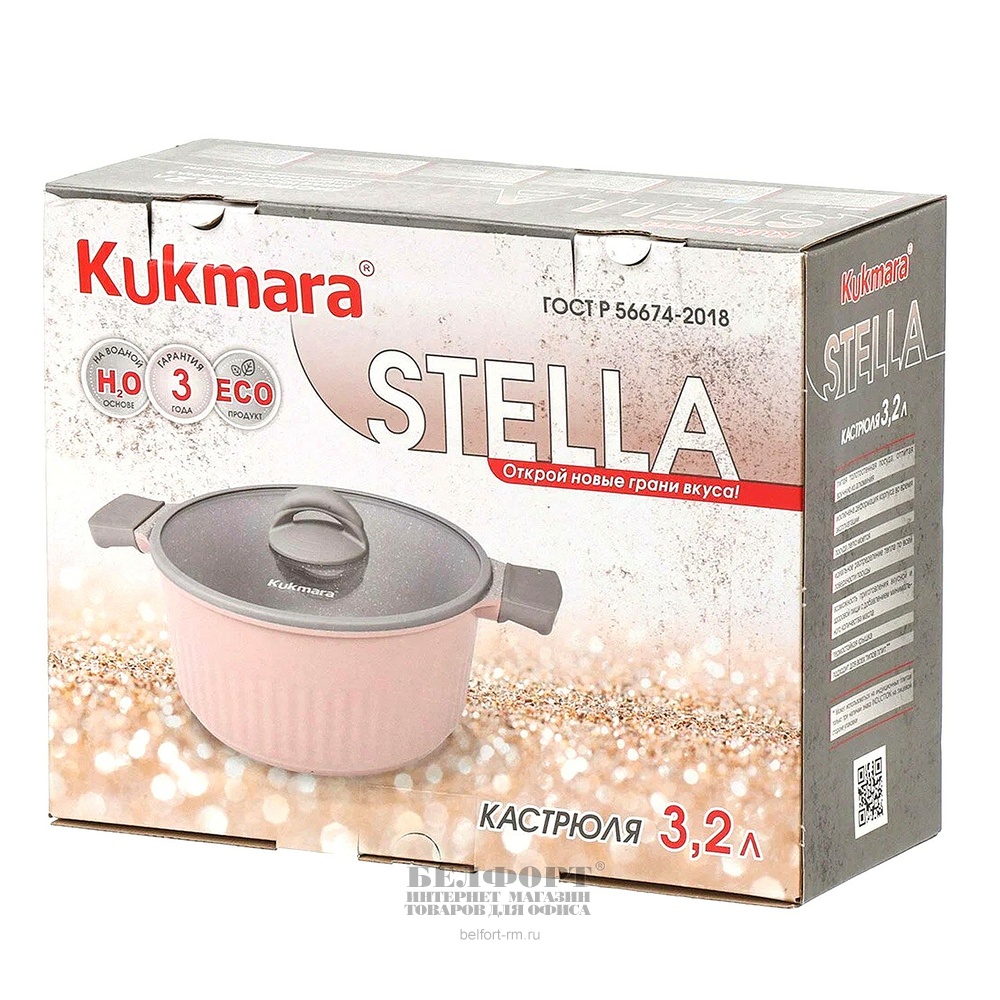 Кастрюля 3,2л, алюминий, антипригарное покрытие, Kukmara, "Stella" со стеклянной крышкой, для всех типов плит кроме индyкционных