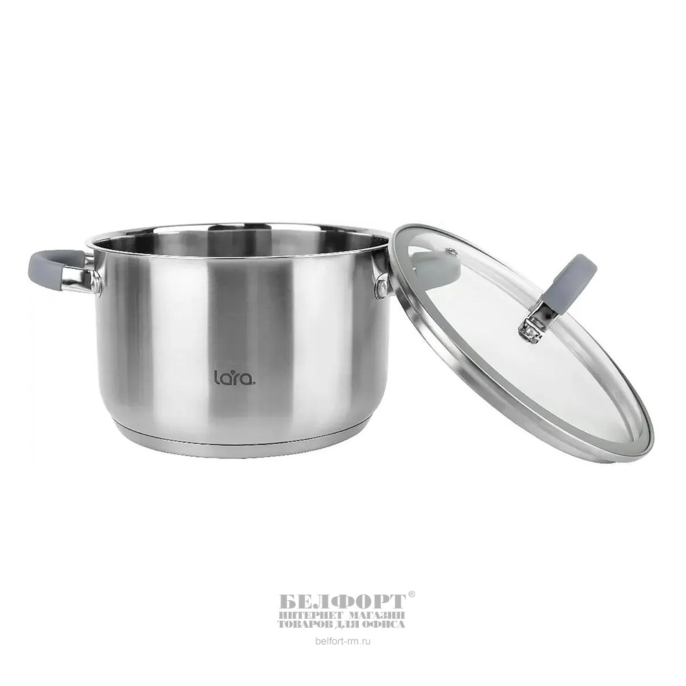 Кастрюля 2,1л, нержавеющая сталь, Lara, "Калипсо", 16см*10,5см, со стеклянной крышкой, для всех типов плит, индукционное дно