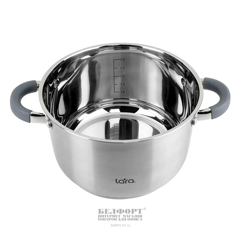 Кастрюля 2,9л, нержавеющая сталь, Lara, "Калипсо", 18см*11,5см, со стеклянной крышкой, для всех типов плит, индукционное дно