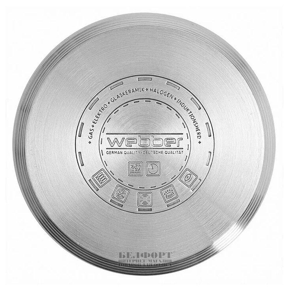 Добавить к сравнению231450Есть в наличии 1 шт.Кастрюля 3л, нержавеющая сталь, без покрытия, Webber, "Profi" со стеклянной крышкой, с силиконовыми ручками, для всех типов плит, индукционное дно