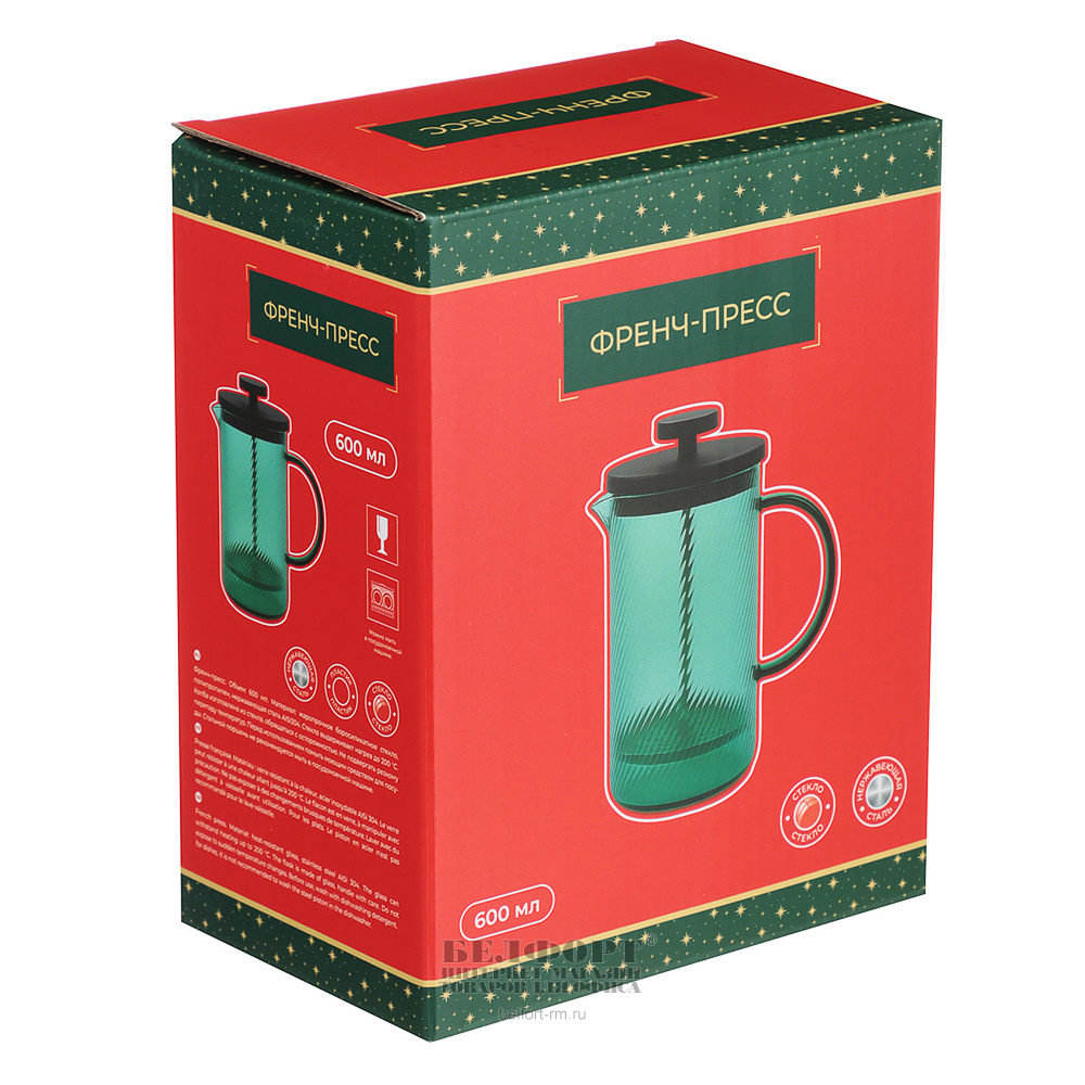 Френч-пресс 600мл, стекло жаропрочное, "Новогодняя коллекция", зеленый