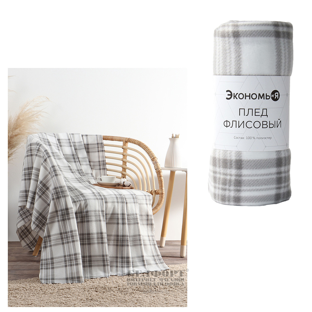 Плед полутораспальный, Экономь и Я, "Клетка", 200см*150см, белый, полиэстер