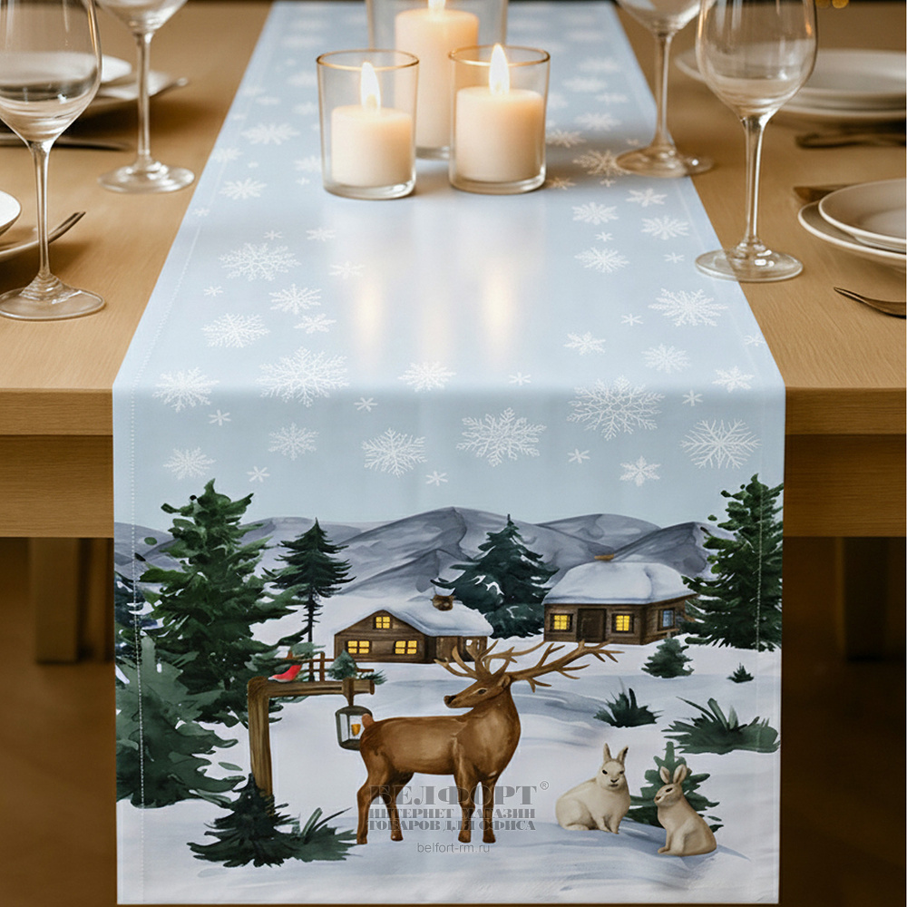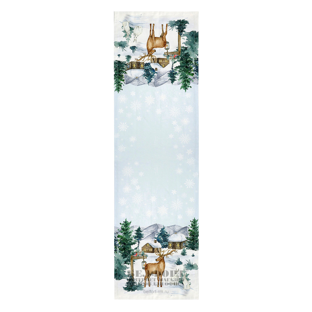 Дорожка на стол Этель, "Forest animals", саржа, белая, серая, 147см*40см, 190г⁄м²