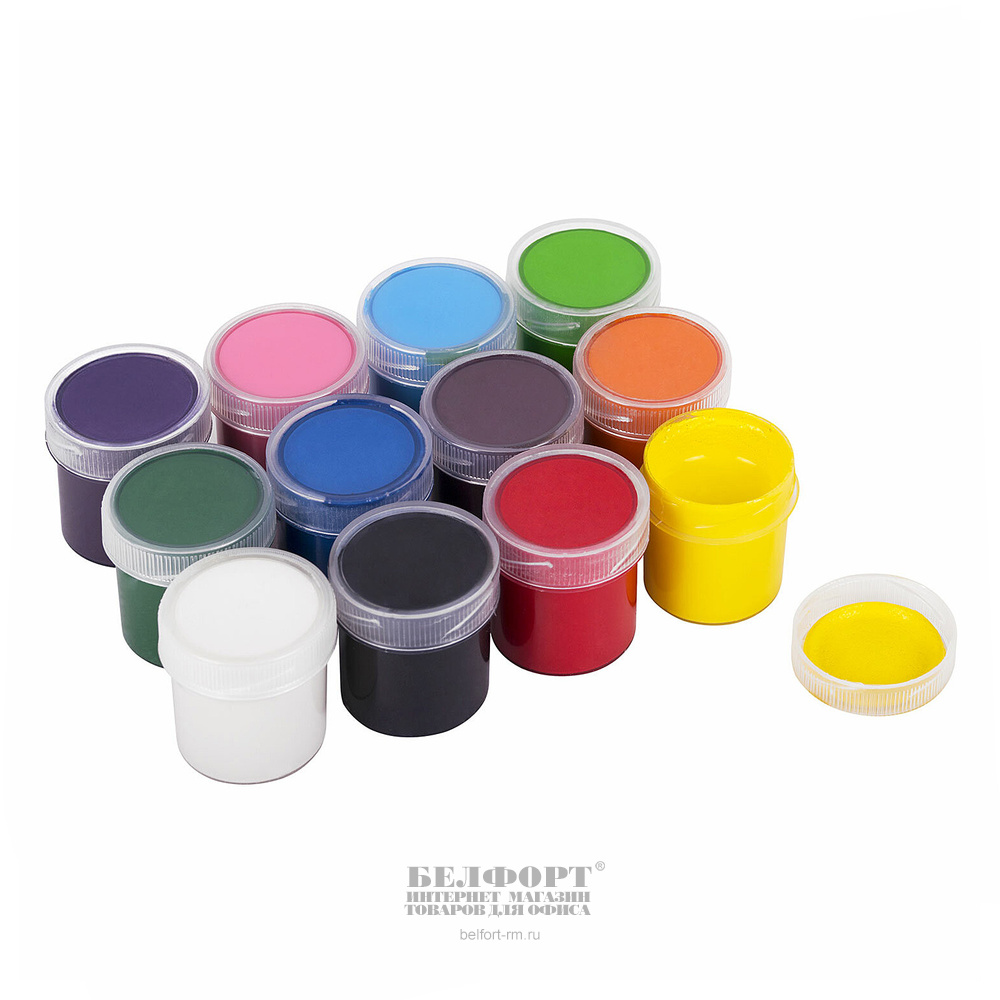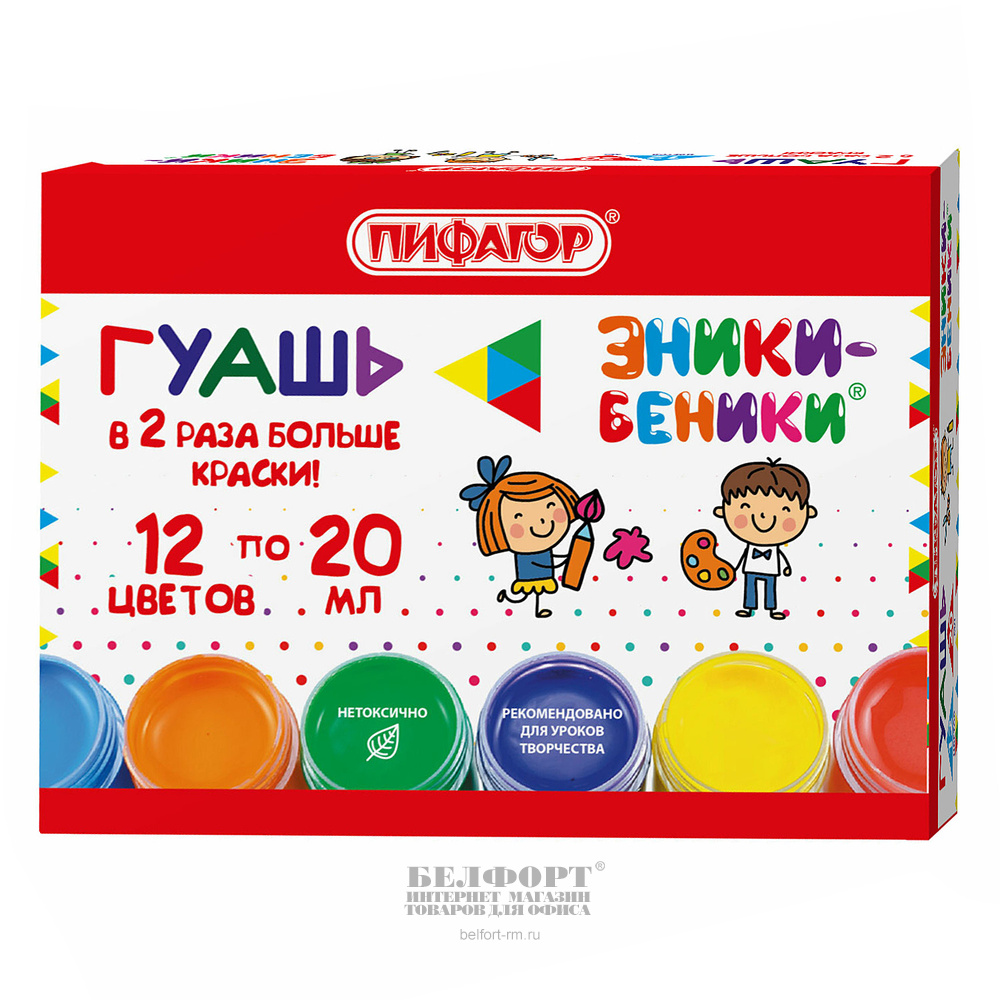 Гуашь 12цв, объем баночки 20мл, Пифагор, "Эники-беники NEW", картон. уп.