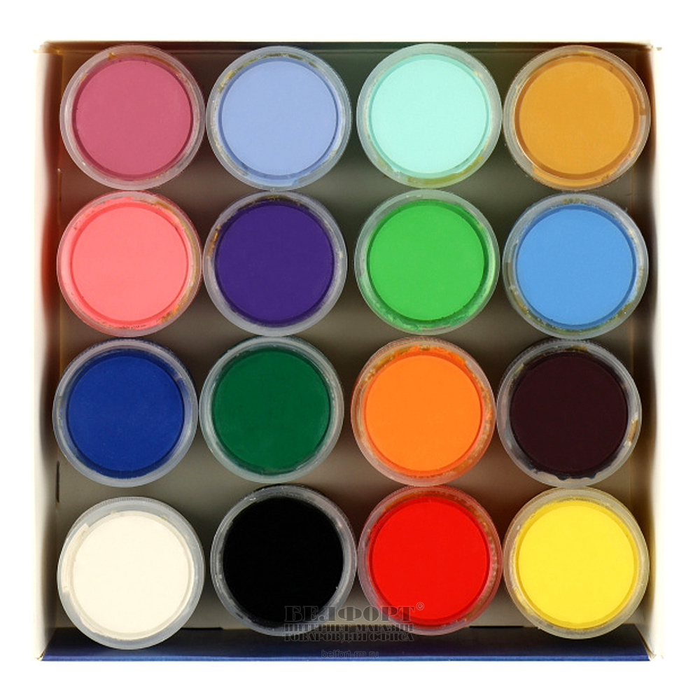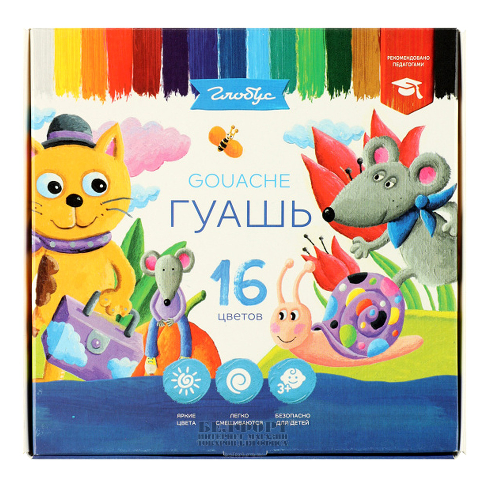 Гуашь 16цв, объем баночки 20мл, Глобус, картон. уп.